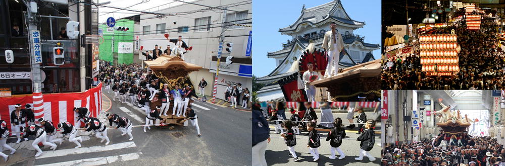 岸和田だんじり祭は、1703年(元禄16年)岸和田藩主・岡部長泰公が岸和田城三の丸に伏見稲荷大社を勧請し、五穀豊穣を祈願して行った稲荷祭が始まりとされています。現在のように「だんじり曳行」が始まったのは、1745年(延亨3年)この稲荷祭の際に岸和田城下5町(本町・堺町・魚屋町・南町・北町)に住む町人たちが小さな「引壇尻(ひきだんじり)」を作り、その上に人物や風景を模して作った飾り物を載せて曳行したのが最初と言われています。その後、城下町だけでなく村々でも祭礼の時に「だんじり曳行」が行われるようになり、近年では各町が競い合うように大きく立派な「だんじり」を作り、スピードや「やりまわし」の華麗さを自慢し合う、泉州地区の秋の風物詩とも言われる一大イベントになっています。